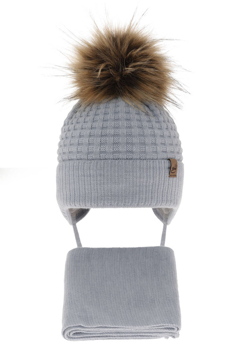 Winterset für Jungen: Mütze und Schlauchschal aus Merinowolle in Grau Metis