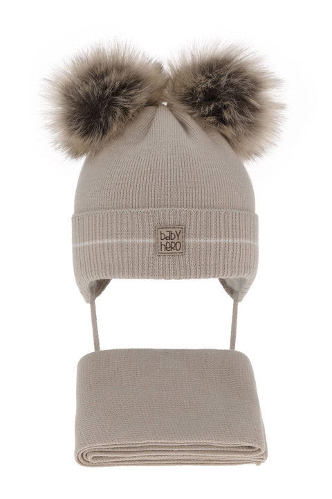 Winterset für Jungen: Mütze und Schal mit zwei Bommeln in Beige Jewel